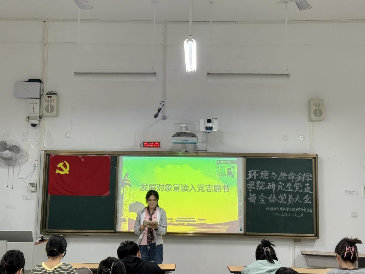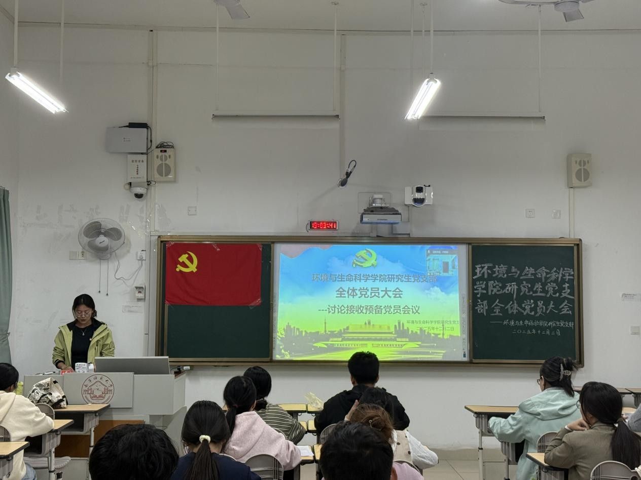 研究生党支部于12月2日晚在武鸣校区1号教学楼104教室召开预备党员接收会议。主要议题为讨论接收耿庆等5名发展对象为预备党员事宜。