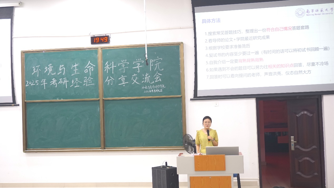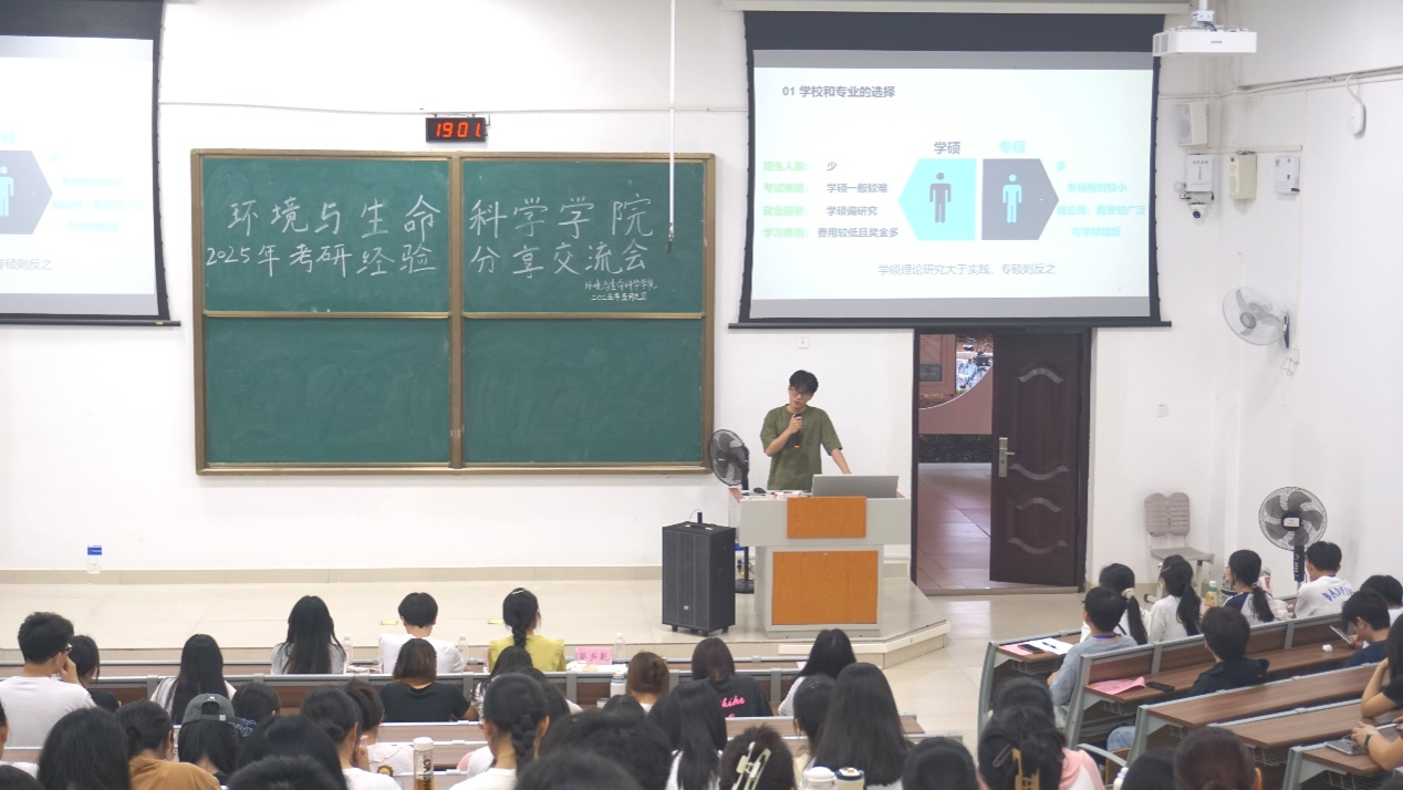 考研经验分享会在地海楼B-109教室举行。四位2021级考研成功学子结合各自考研经历,为备考学子提供了全方位指导。