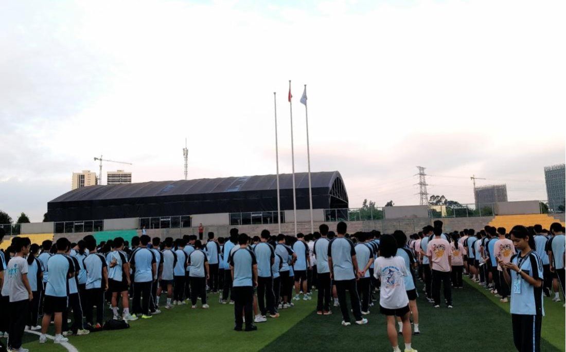 实习生迅速进入角色,协助师生依照预案有序撤离至操场的安全区域。列队完毕后,全体师生默哀致敬,于庄严肃穆的氛围中铭记那段饱含屈辱与抗争的历史。