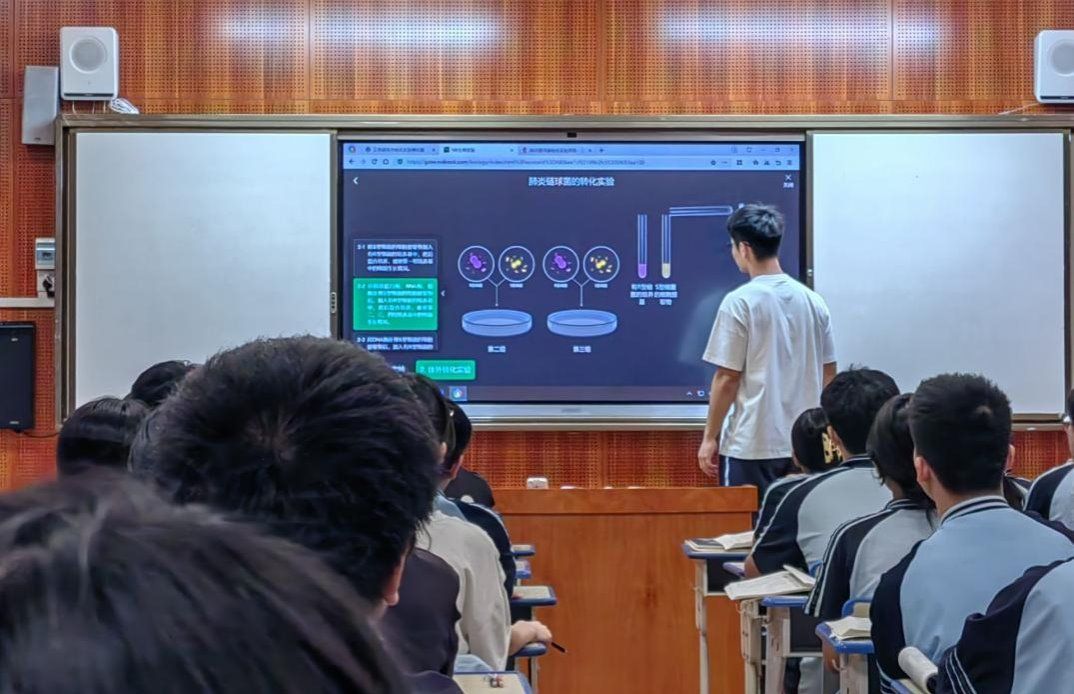 课堂教学方面,本周南宁十四中的纪老师开展了《肺炎链球菌的转化实验》公开课,实习生全程进行了观摩。纪老师运用数字化工具,动态展示经典实验,将抽象的遗传物质探索过程直观呈现,助力学生在直观感受中领悟科学原理。实习生们严谨细致地做好教学记录。课后,生物学科组组织开展研讨活动。纪老师针对教学设计的逻辑架构与突出亮点进行了分享。 黑料不打烊