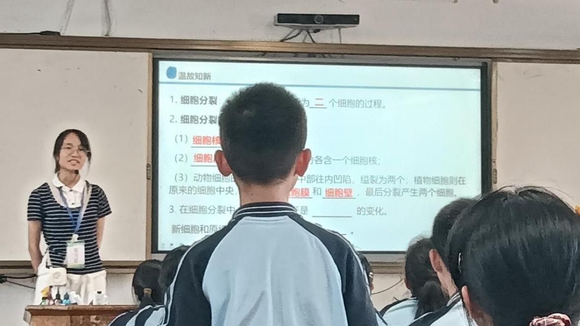 实习期间,实习生王彬莹在七年级(20)班第七节课执教《动物体的结构层次》一课。她以生动的案例和直观的模型演示,引导学生深入理解细胞、组织、器官之间的层次关系,课堂互动积极,教学效果显著。课后,开展对实习生王彬萤的教学评课交流教学研讨会,会议上,与会教师与实习生们从教学设计、课堂互动、知识衔接等角度展开深入探讨,肯定了其教学思路的清晰性与创新性,同时对细节优化提出了建议。