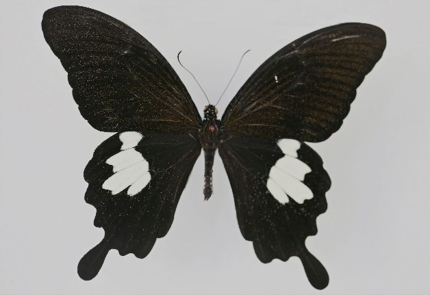 鳞翅目凤蝶科。翅展范围在80~101mm之间,具有雌雄异型的特征。其色型变异显著,存在棕色型、白色型以及若干过渡类型。值得注意的是,无论何种色型,该物种后翅反面的外缘均分布着一列宽度均匀的黄斑,这一特征从臀角延伸至前角,可作为与多数近缘物种区分的重要依据。