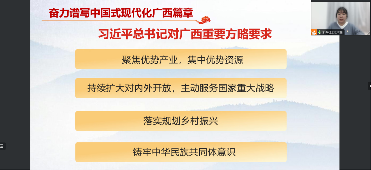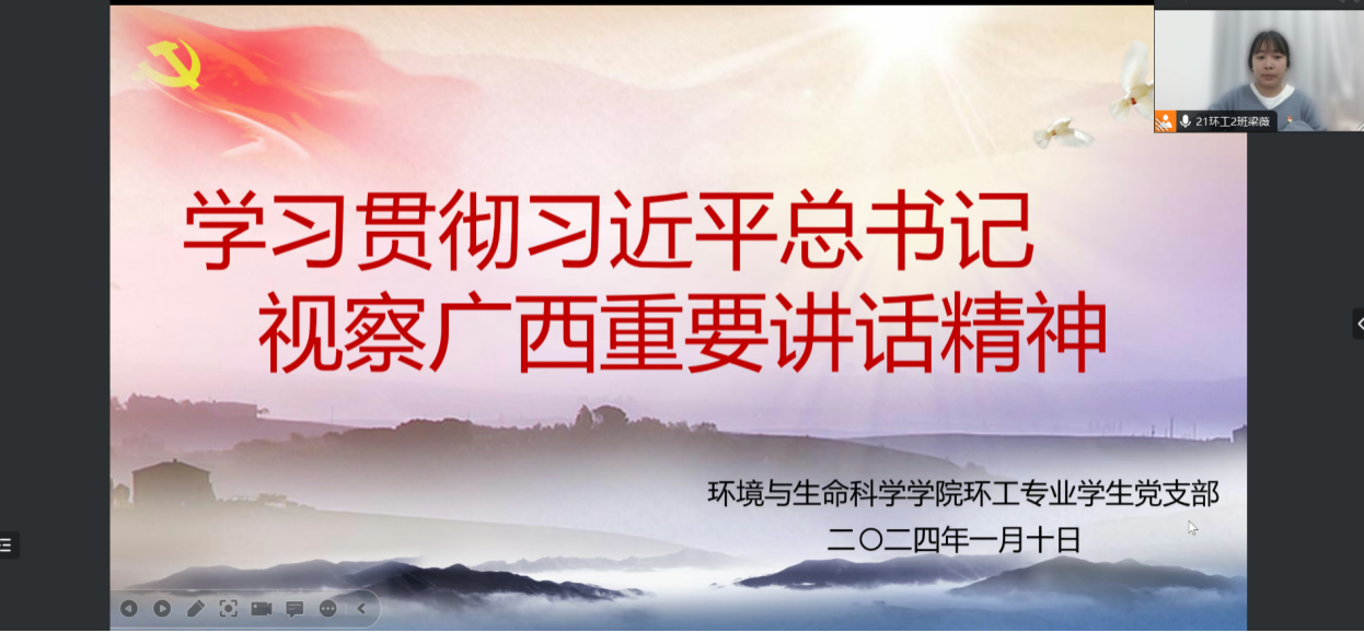 环工专业学生党支部于1月10日晚在腾讯会议开展“学习贯彻习近平总书记视察广西重要讲话精神”主题党课学习。参会人员有 黑料不打烊