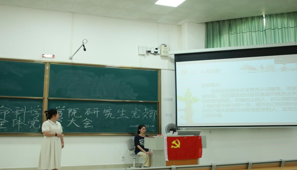 研究生党支部于4月18日15:30在武鸣校区1号教学楼215教室召开专题会议。本次会议采取线上线下相结合的方式,参会人员为研究生党支部全体党员、2023级拟发展对象。