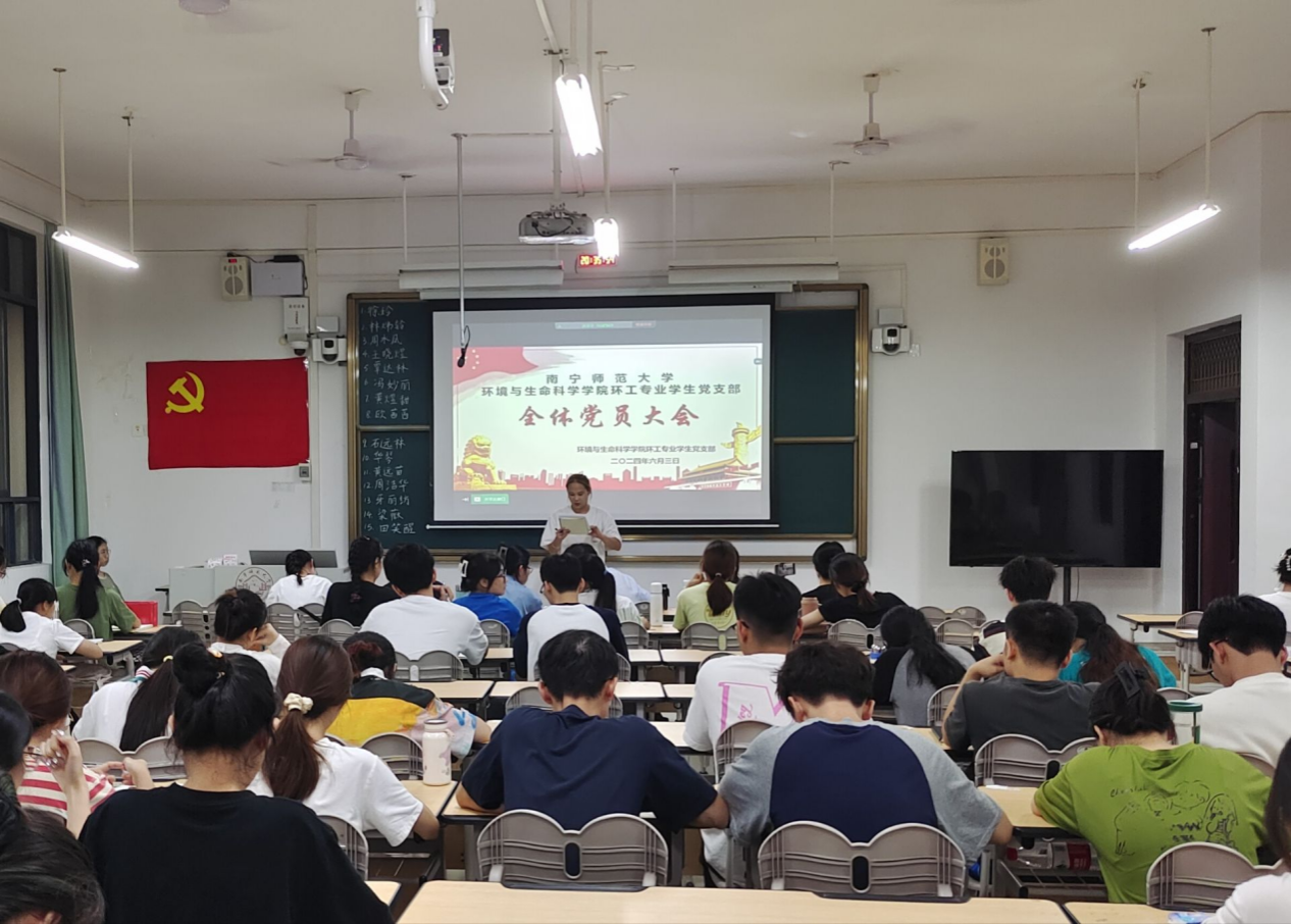 环工专业学生党支部于6月3日晚在武鸣校区1号教学楼218教室召开全体党员大会。会议主要议题是讨论徐玲等15名预备党员转为正式党员的问题,参会人员有 黑料不打烊