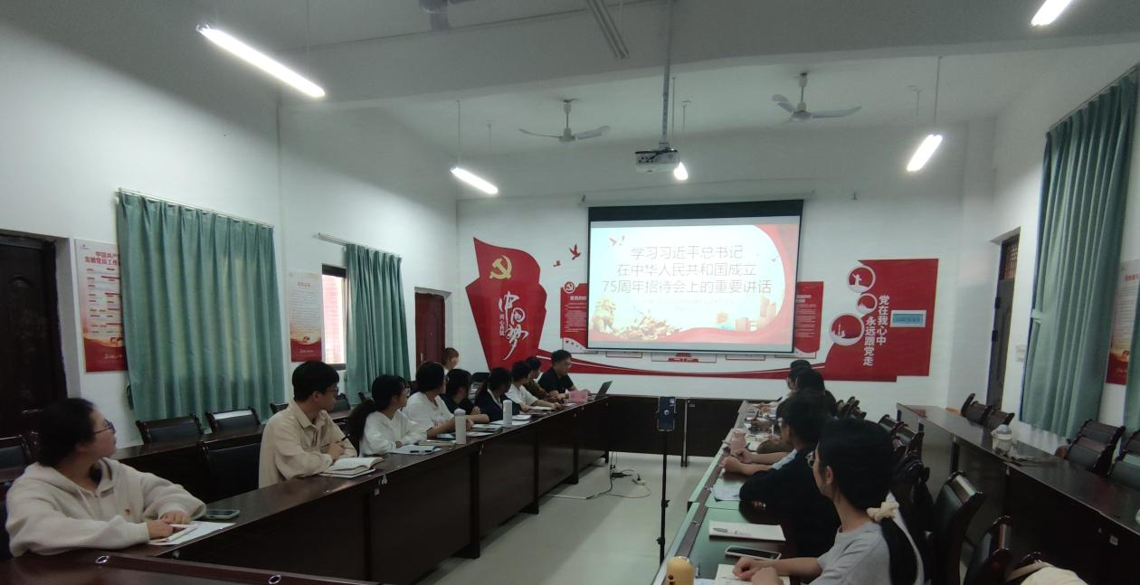 环境专业学生党支部于11月20日下午在地海楼B508室开展了学习“习近平总书记在中华人民共和国成立75周年招待会上的重要讲话”主题党课,党课由支部书记张拓主持。