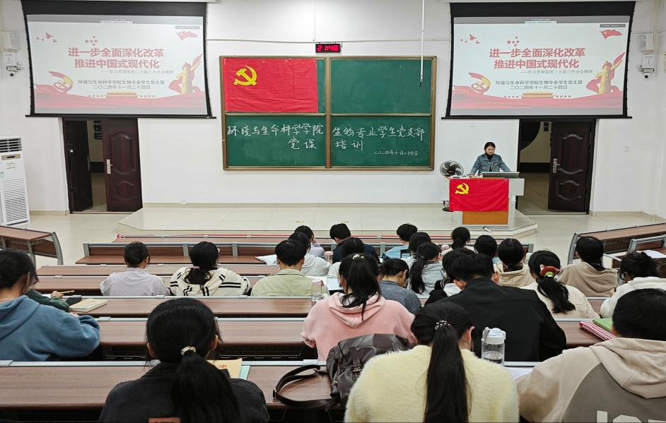 生物专业学生党支部于11月24日在武鸣校区地海楼B109教室开展了“全面深化改革,推进中国式现代化”主题党课学习活动。生物专业学生党支部全体党员参与学习,支部副书记梁彩叶主持此次党课。