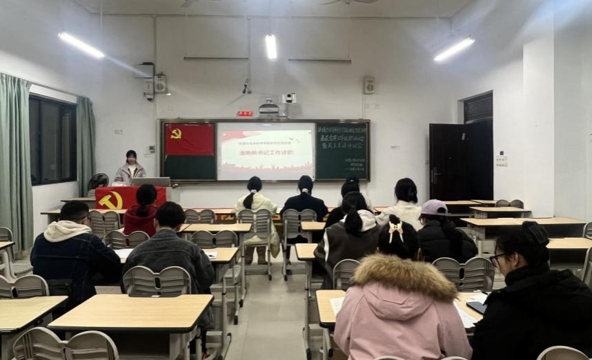 研究生党支部在武鸣校区1号教学楼101教室通过线上线下相结合的方式召开2024年度组织生活会。会议旨在全面总结过去一年支部工作,深入查摆问题,明确改进方向,为党建工作高质量发展凝聚共识、注入动力。会议由研究生党支部书记潘艳桃主持,支部全体党员、预备党员参会。