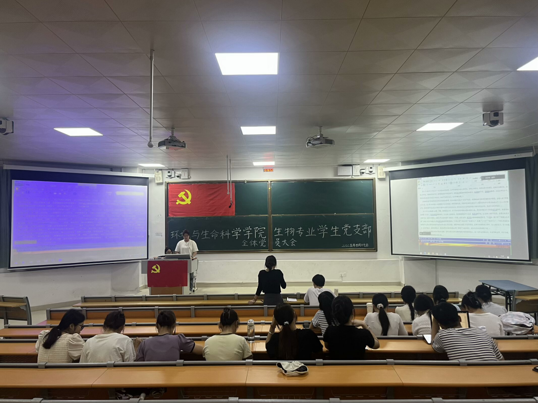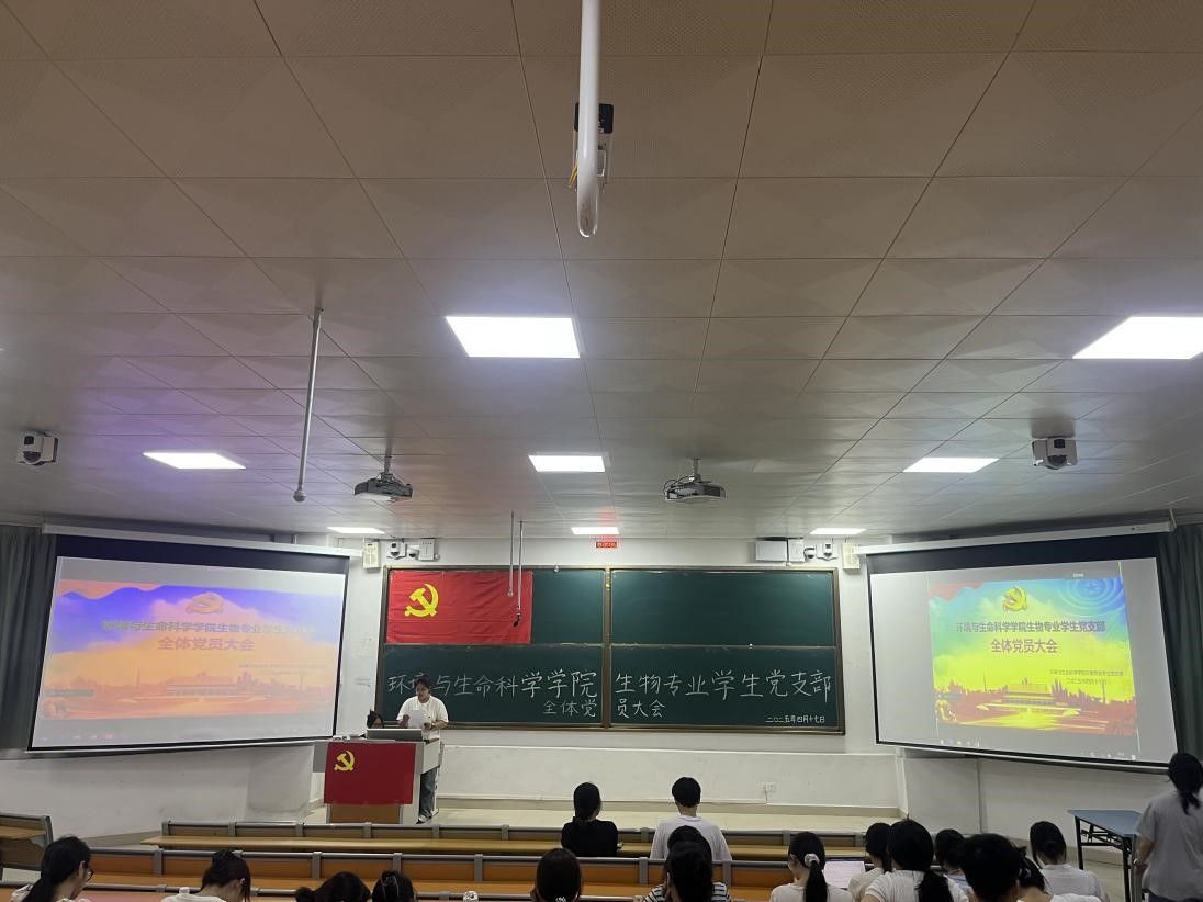 生物专业学生党支部于2025年4月17日晚在武鸣校区1号教学楼114教室以线上线下相结合的方式召开全体党员大会。本次大会主要讨论确定宋金丽等55位入党积极分子为发展对象事宜。