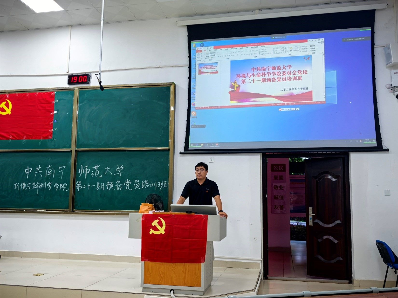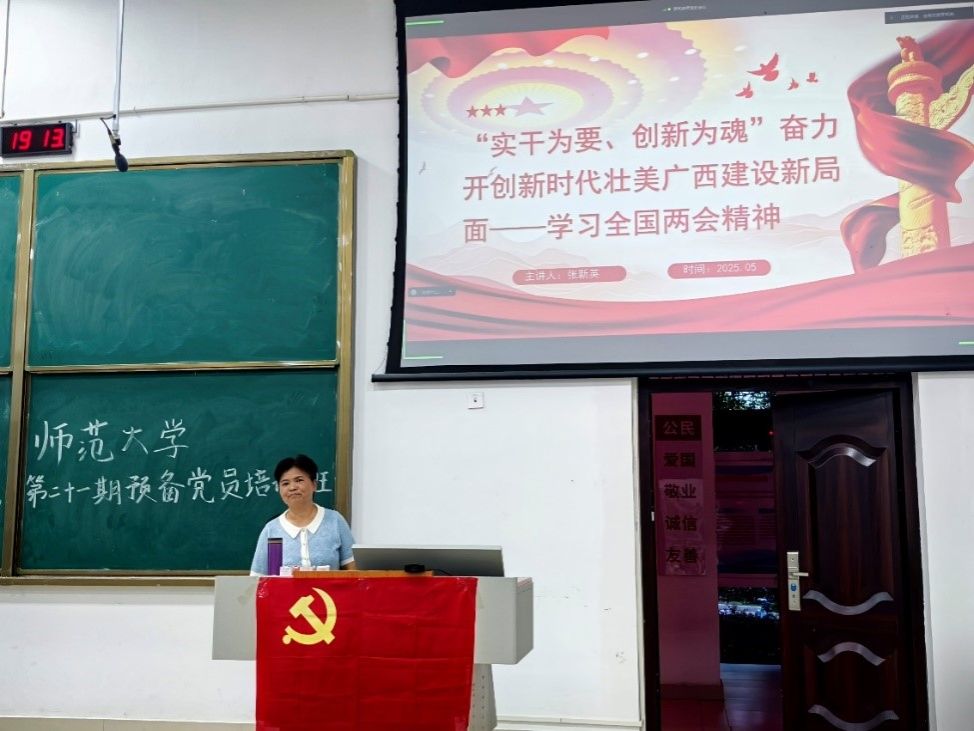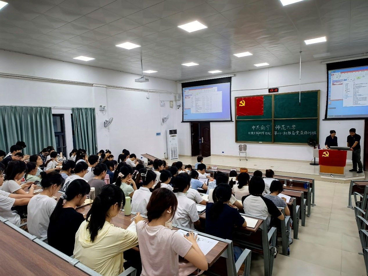 分党校于5月14日晚在武鸣校区地海楼109教室开展第二十一期预备党员培训班。本次培训由学院党委专职组织员普胤杰主持,副院长张新英主讲,全体预备党员参加培训。