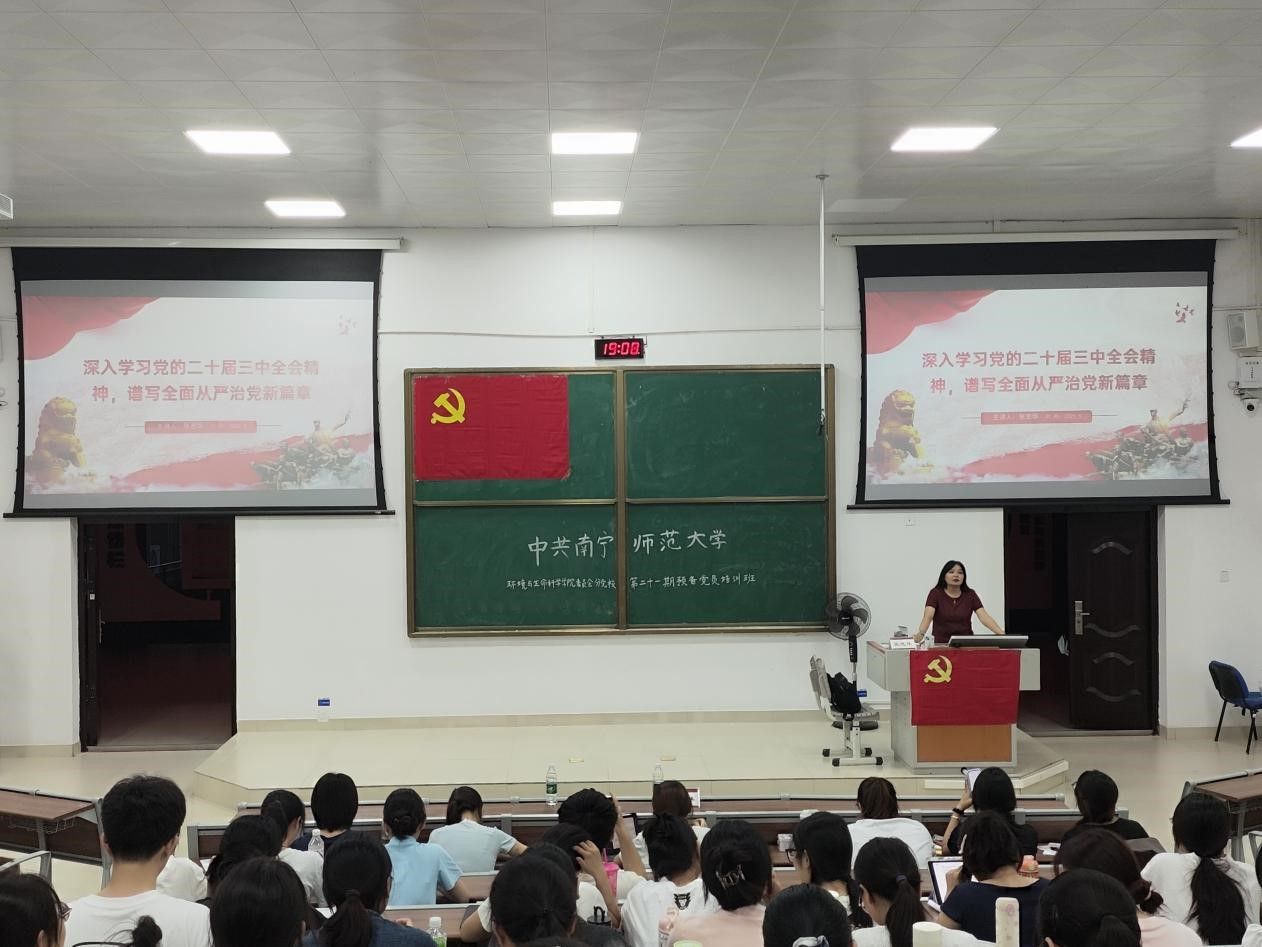 分党校于5月15日19:00在地海楼B109开展了第二十一期预备党员培训班第三讲。本次培训由学院副院长张忠华主讲题为《深入学习党的二十届三中全会精神,谱写全面从严治党新篇章》专题党课,学院全体预备党员参加培训。