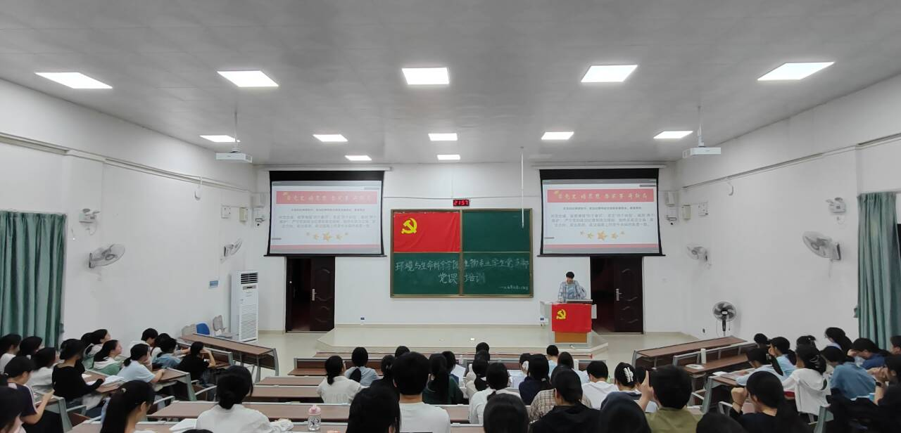 生物专业学生党支部于5月25日晚在武鸣校区B109教室开展“践行优良作风,争做有为青年”党课培训,此次培训课程由生物专业学生党支部组织委员傅安庆主持,支部全体党员和发展对象参加培训。