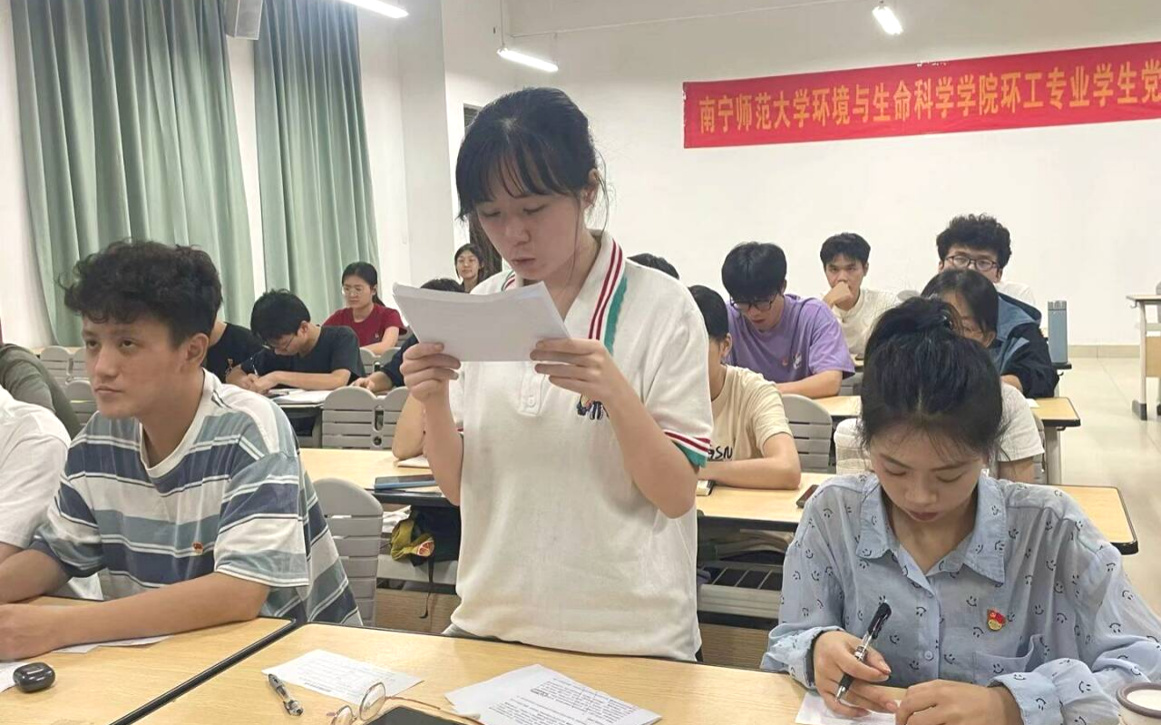 环工专业学生党支部于5月29日晚在武鸣校区1号教学楼220教室召开预备党员接收会议。会议主要议题是讨论接收姚才腾等11名发展对象为预备党员的问题,与会人员有支部书记普胤杰、全体党员以及11名发展对象。