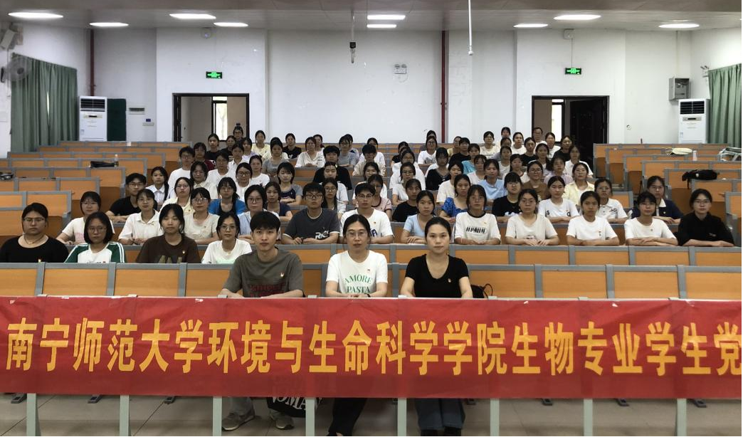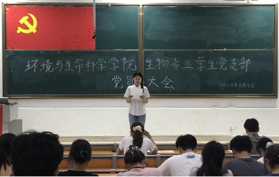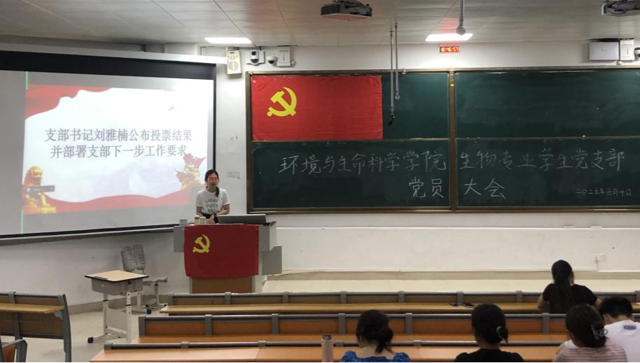 生物专业学生党支部于6月10日晚在武鸣校区1号教学楼114教室召开党员大会增补支部委员,参会人员为支部书记刘雅楠、支部全部党员及预备党员,会议由支部副书记梁彩叶主持。