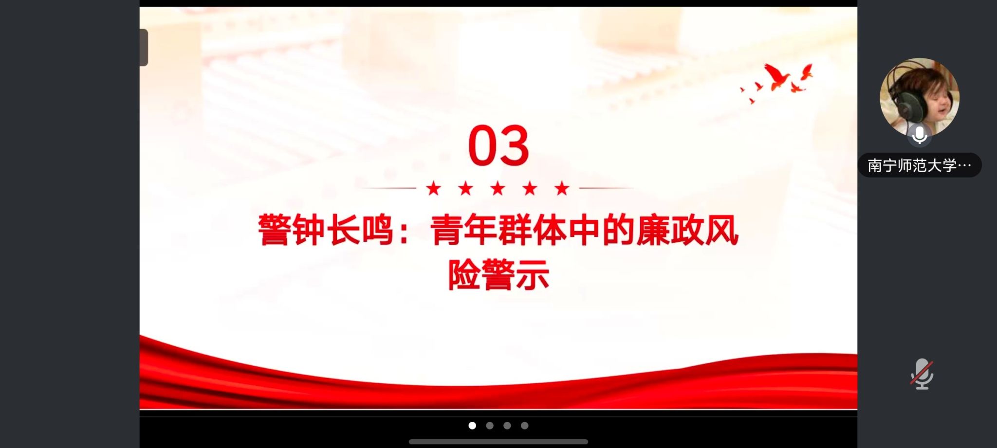 环工专业学生党支部于11月29日通过腾讯会议开展"新时代青年清廉廉政"专题党课,支部书记普胤杰主讲,全体党员参与学习。
