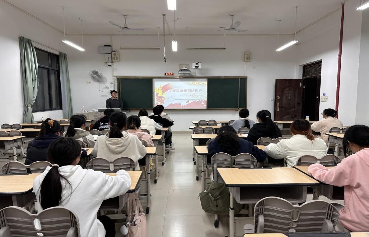 环工、环境专业学生党支部于11月28日在武鸣1号教学楼301教室联合举办发展对象短期培训会,15名学员参加。会议旨在强化理论学习,筑牢理想信念根基。