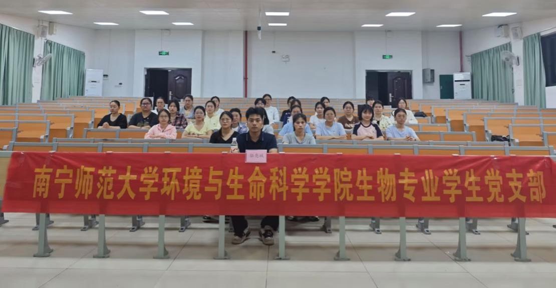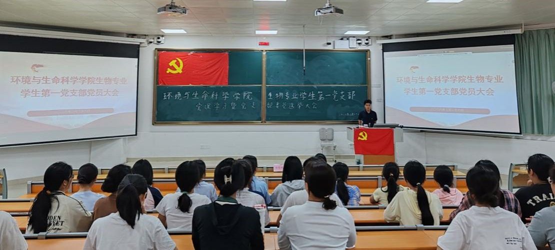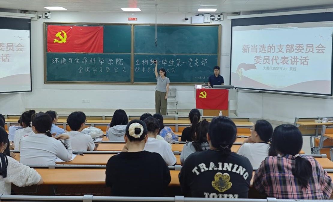 生物专业学生第一党支部在武鸣校区1号教学楼115教室顺利开展“学习贯彻党的二十届四中全会精神”党课暨党支部委员会选举大会。本次会议采取线上线下相结合的方式,由党支部书记骆亮城主持,党支部全体党员参会。