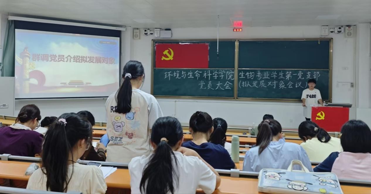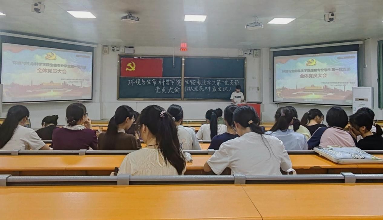 生物专业学生第一党支部在武鸣校区2号教学楼109教室组织召开讨论确定发展对象党员大会。会议采用线上线下相结合的方式进行,由党支部宣传委员孙涛同志主持,党支部全体党员出席会议。