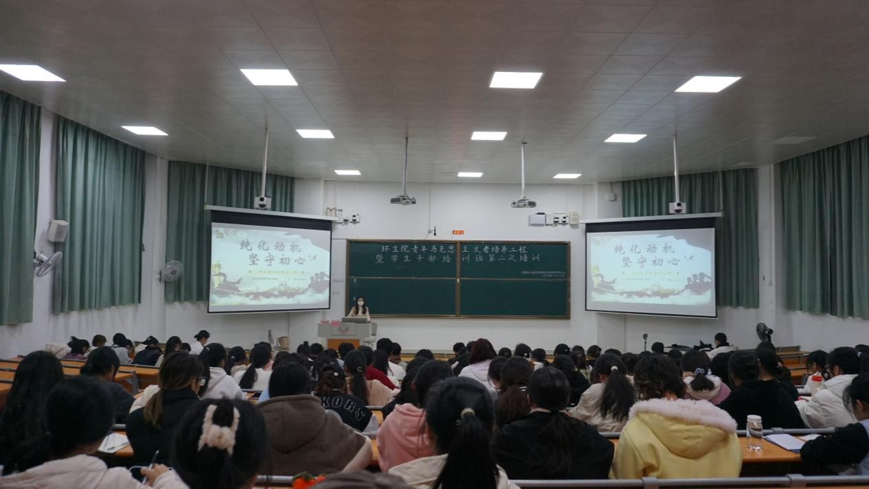 在武鸣校区1号教学楼214教室顺利开展了青年马克思主义者培养工程暨学生干部培训班的第二讲。本次培训旨在进一步提升学院青年学生干部的思想政治素养,纯化入党动机。主讲人为辅导员龚炜婷。
