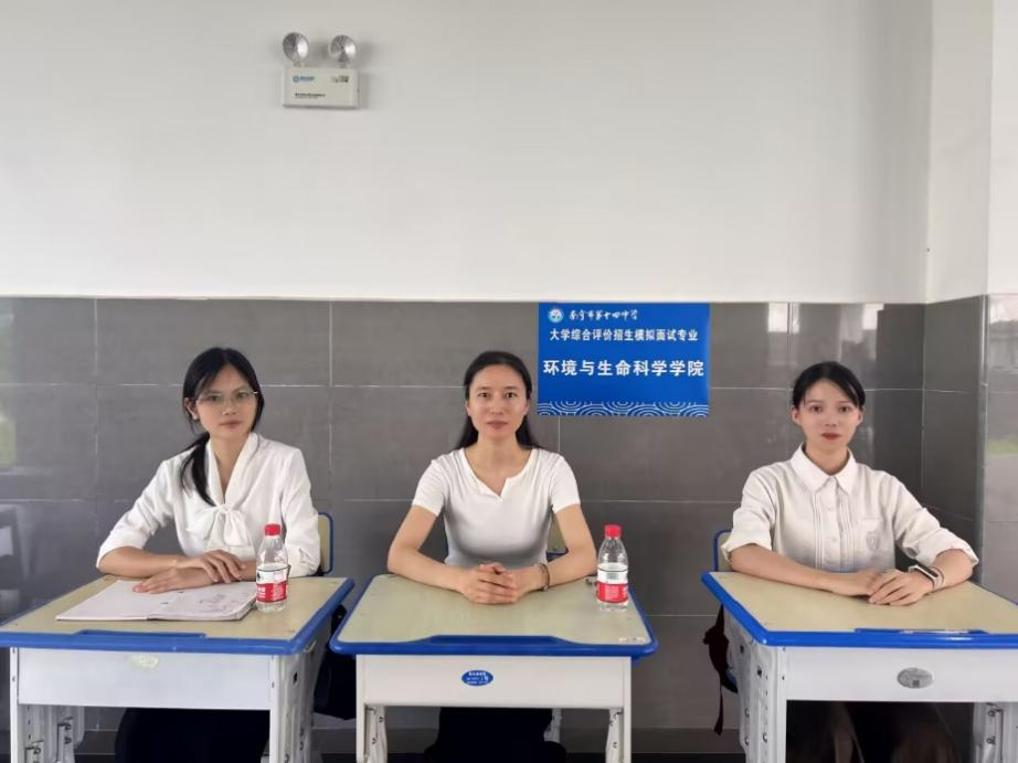 教师赵志娟携两名本科生担任面试官,为中学生提供专业指导。