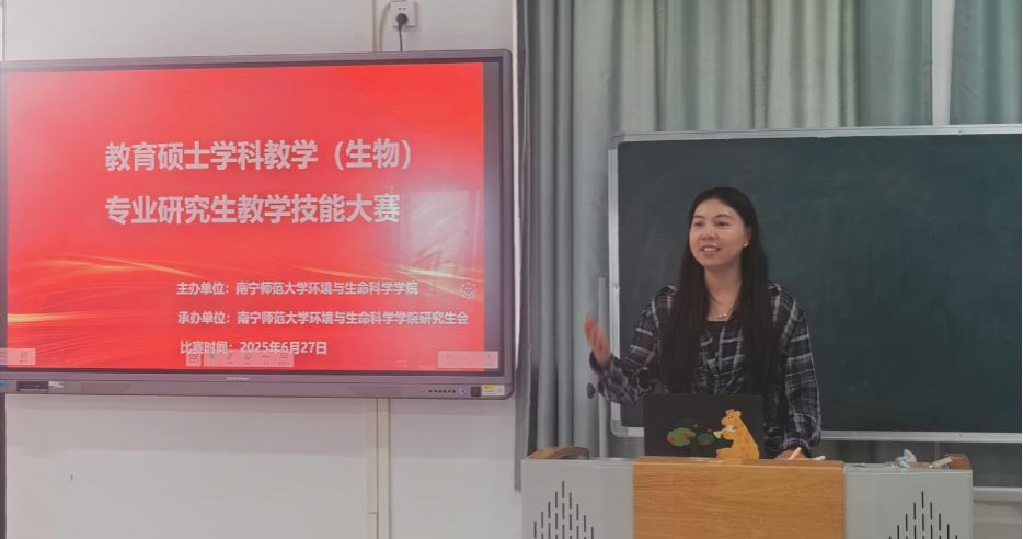 6月27日, 黑料不打烊 于地海楼A506顺利举办学科教学(生物)专业研究生教学技能大赛。本次大赛特邀南宁师范大学地理科学与规划学院唐伟光、广西睿领教育研究院兰瑛和广西教育研究院韦珺三位老师组成评委团,学院院长何英姿、研究生教学秘书张璇出席本次大赛。作为2025年全国“田家炳杯”教学技能大赛的重要选拔环节,此次赛事吸引了众多优秀学子同台竞技,为生物教育领域人才储备注入新活力。