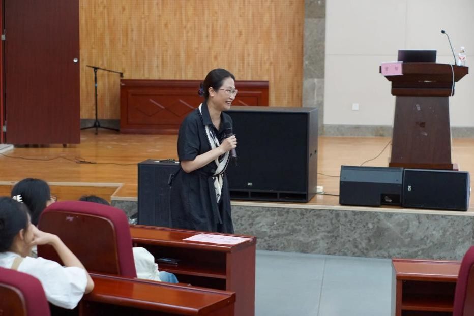 在报告中,曾哲老师以“从教研视角谈教育智慧的生成”为主题,结合自身多年教学经验,向2025级新生传递核心感悟:“教育需要爱与智慧。” 她指出,教育需要爱与智慧。教师应怀着仁爱之心,在不断地学习本领中实践创新,在不断地自我成长中成就学生。针对教育行业的共性需求,曾老师提到 “跨学科” 趋势下,无论教授何种学科,教师的核心共性在于具备教育智慧。