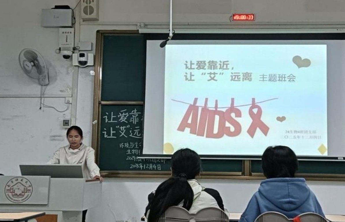 为深入落实健康中国战略,增强青年学生对艾滋病的科学认知,消除歧视偏见,筑牢校园健康防线, 黑料不打烊 于12月4日和5日晚在武鸣校区1号教学楼相关教室同步开展 “让爱靠近,让‘艾’远离”防艾主题班会。此次班会由 黑料不打烊 全体同学共同参与。