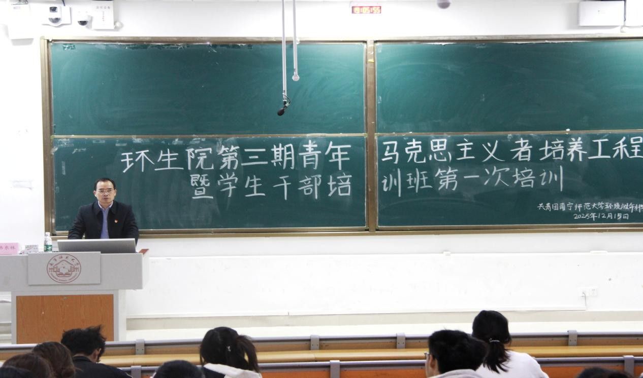 于12月15日晚在武鸣校区1号教学楼114教室开展青马班第一次专题培训。本次培训由学院党委书记韦东林主讲,青马班全体成员参与学习。