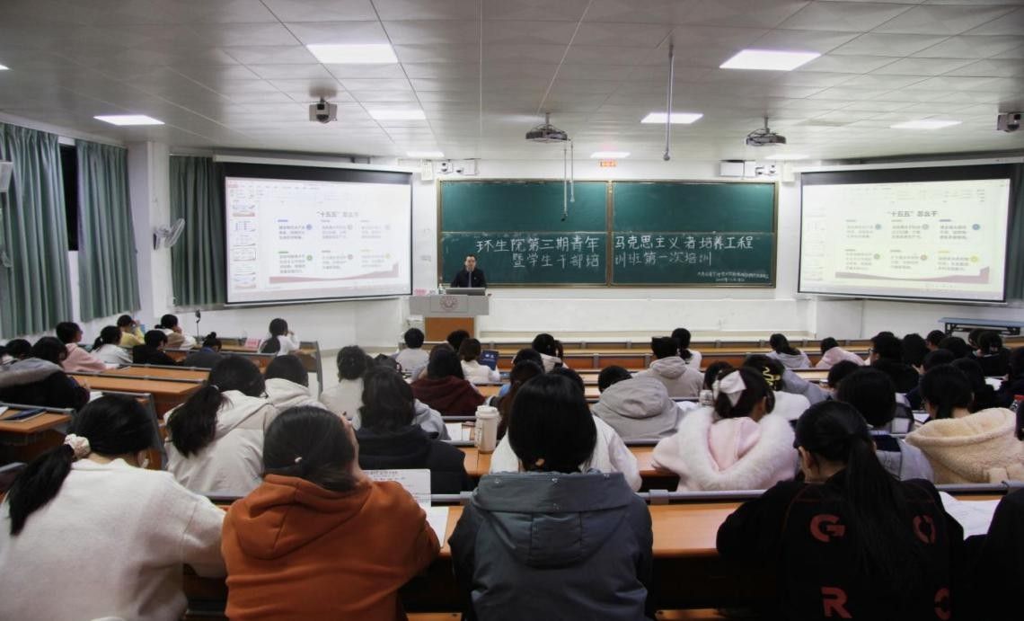 他首先紧扣中国共产党第二十届中央委员会第四次全体会议的核心内容,对“高质量发展”“新质生产力”“城乡融合”等关键表述展开深入解读,通过对比“十四五”时期伟大成就与“十五五”时期发展目标,帮助学员直观感受中国式现代化的推进脉络。随后,他聚焦全会提出的“科技自立自强”“绿色转型”“城乡融合”三大课题,结合生态保护领域典型案例,阐释青马班成员要立足专业特长践行全会精神。