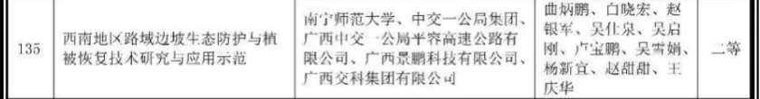 流域高质量发展研究中心曲炳鹏副教授和赵银军教授牵头申报的《西南地区路域边坡生态防护与植被恢复技术研究与应用示范》项目,成功获得2025年度中华环保联合会科技进步奖二等奖。该奖项以南宁师范大学为第一完成单位,曲炳鹏副教授担任第一完成人,赵银军教授全程指导并深度参与了项目研究工作。项目受到了国家自然科学基金、广西自然科学基金、天津市科技计划、全国生态修复青年开放基金等多个课题的资助。