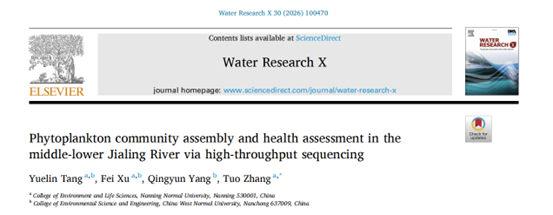 流域污染防治与生态保护重点实验室(团队)在国际水环境领域权威期刊《Water Research X》(Water Researh姊妹刊,JCR Q1,中科院/新锐分区2区,IF=8.2)发表了题为《Phytoplankton community assembly and health assessment in the middle-lower Jialing River via high-throughput sequencing》的论文成果,重点实验室主任张拓副教授为论文的通讯作者,南宁师范大学为论文的第一完成单位。该研究为长江流域生态评估方法构建、关键驱动因子识别及生态风险预警等提供了重要的科学依据。