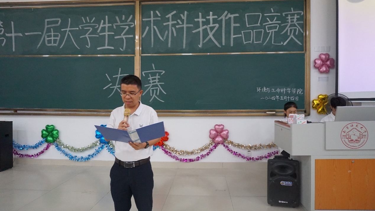 于武鸣校区一号教学楼215教室举行第十一届大学生学术科技作品竞赛决赛。莅临本次大赛的评委有党委副书记王卫彬,学院老师胡聪、张越、周伟、莫莉萍及辅导员刘雅楠。