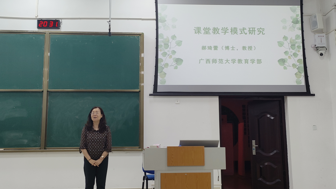 第二场报告中,郝教授从教学模式的定义、教学模式的结构、教学模式的演变、教学模式的发展趋势、教学模式的选择与应用和教学模式的类型六个方面进行了深入的讲解,结合课堂实践重点介绍了9种课堂中经常用到的教学模式类型,还强调了课堂教学要紧抓以“生”为本的核心,打造学生主体的教学课堂。