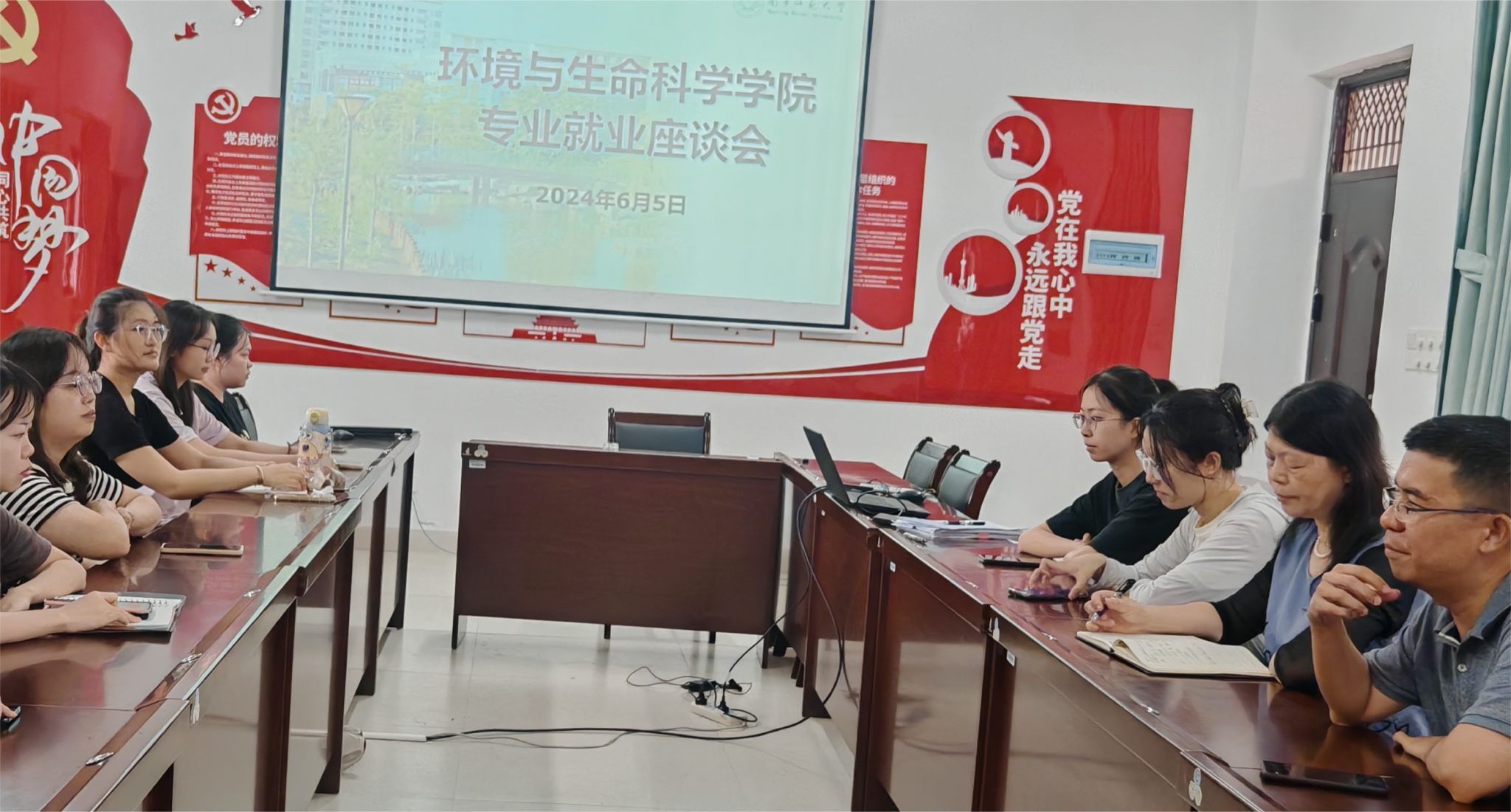 在地海楼B508召开未就业毕业生专业座谈会,学院党委书记何英姿、院长宋书巧、党委副书记王卫彬和毕业班辅导员龚炜婷出席本次会议。