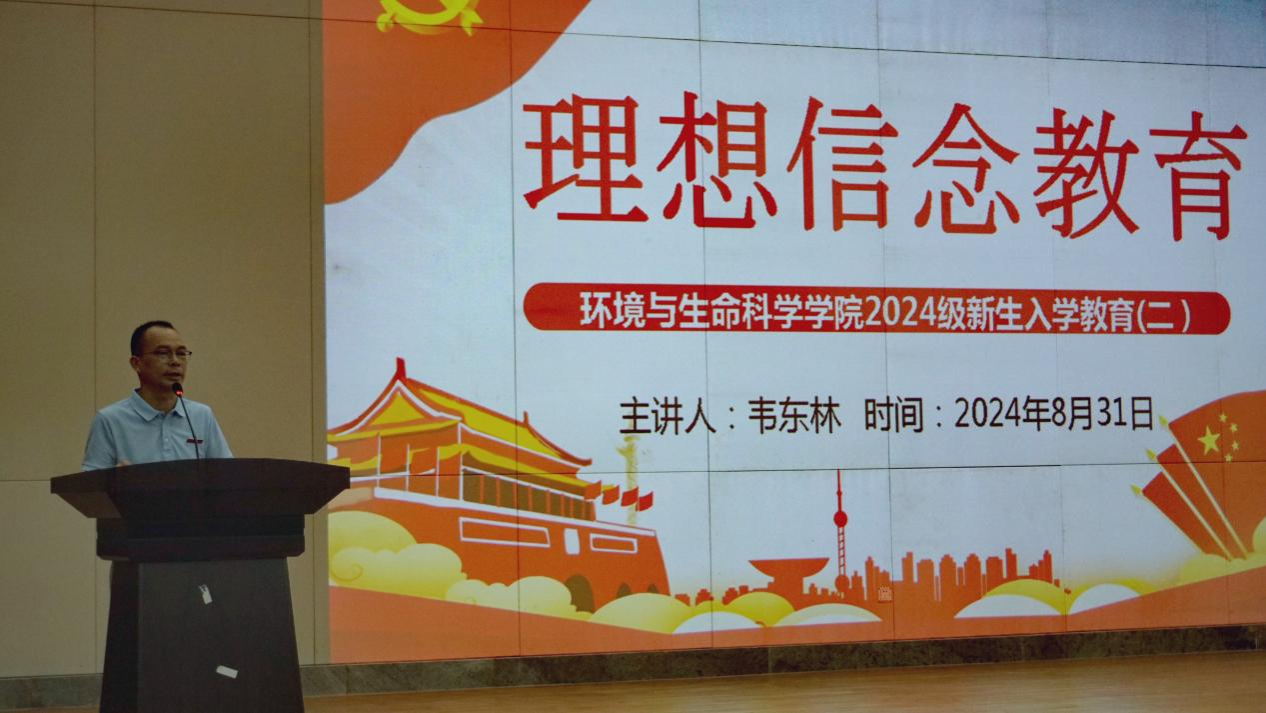 韦东林副书记面向新生开展了理想信念教育。他从站稳政治立场提升人生高度、以宽广胸襟拓展人生的宽度、德才兼优拓展人生深度等方面,启发同学们筑牢理想信念,树立正确的世界观、人生观、价值观,让自己成为一名堪当民族复兴大任的时代新人。