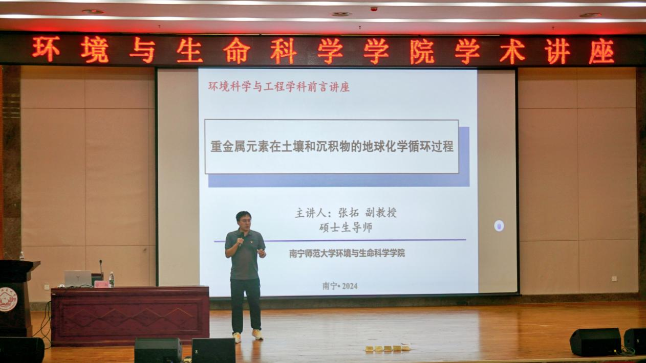 于9月24日下午在武鸣校区图书馆一楼报告厅召开环境科学与工程学科前沿讲座。该院相关专业老师及2024级全体新生、2023级环境工程和环境科学专业的同学参加了讲座。