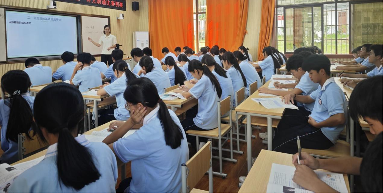 赴上思中学实习小组已到岗四周。为促进教学水平的提高,实习学校高一年级生物组于9月27日举办了一场生物学科公开课,该院实习生积极参与到公开课中。为了确保公开课的顺利进行,实习生们在课前进行了充分的准备,召开多次会议明确课程目标,深入研究教材,精心制定详细教案。为了提升互动性,设计小组活动,制作生动课件,实习生们通过多次模拟授课,互相观摩和反馈,反复调整讲解方式,确保课堂流畅进行。