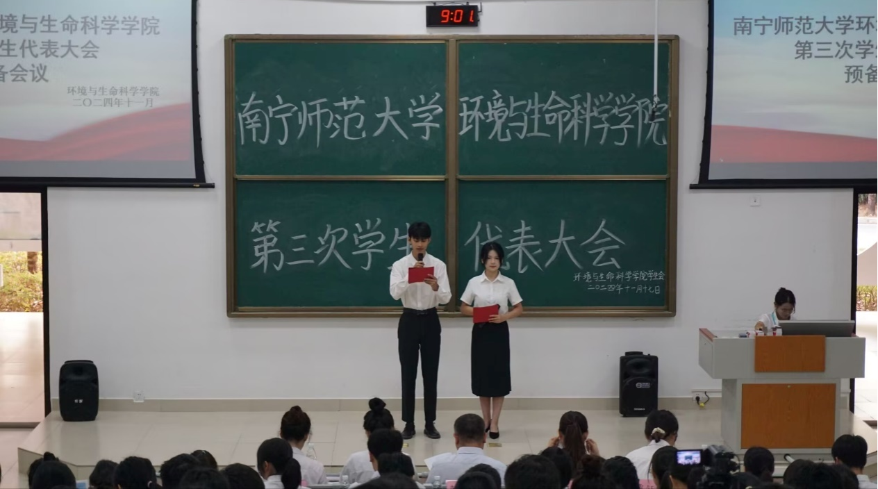 正式会议在庄严的国歌声中拉开帷幕。团委书记刘雅楠致开幕词,对大会的召开表示热烈祝贺,期待大会取得圆满成功。学院党委副书记刘启满随后进行讲话,对学生会过去一年的工作成绩给予了高度评价,鼓励新一届成员再接再厉,勇于担当,为学校和学院的发展贡献力量。校学生会代表黎英也向大会表示祝贺,传达了南宁师范大学学生会的祝福。最后由第二届学生会执行主席张珂萤作工作报告,总结了过去一年学生会取得的成绩。