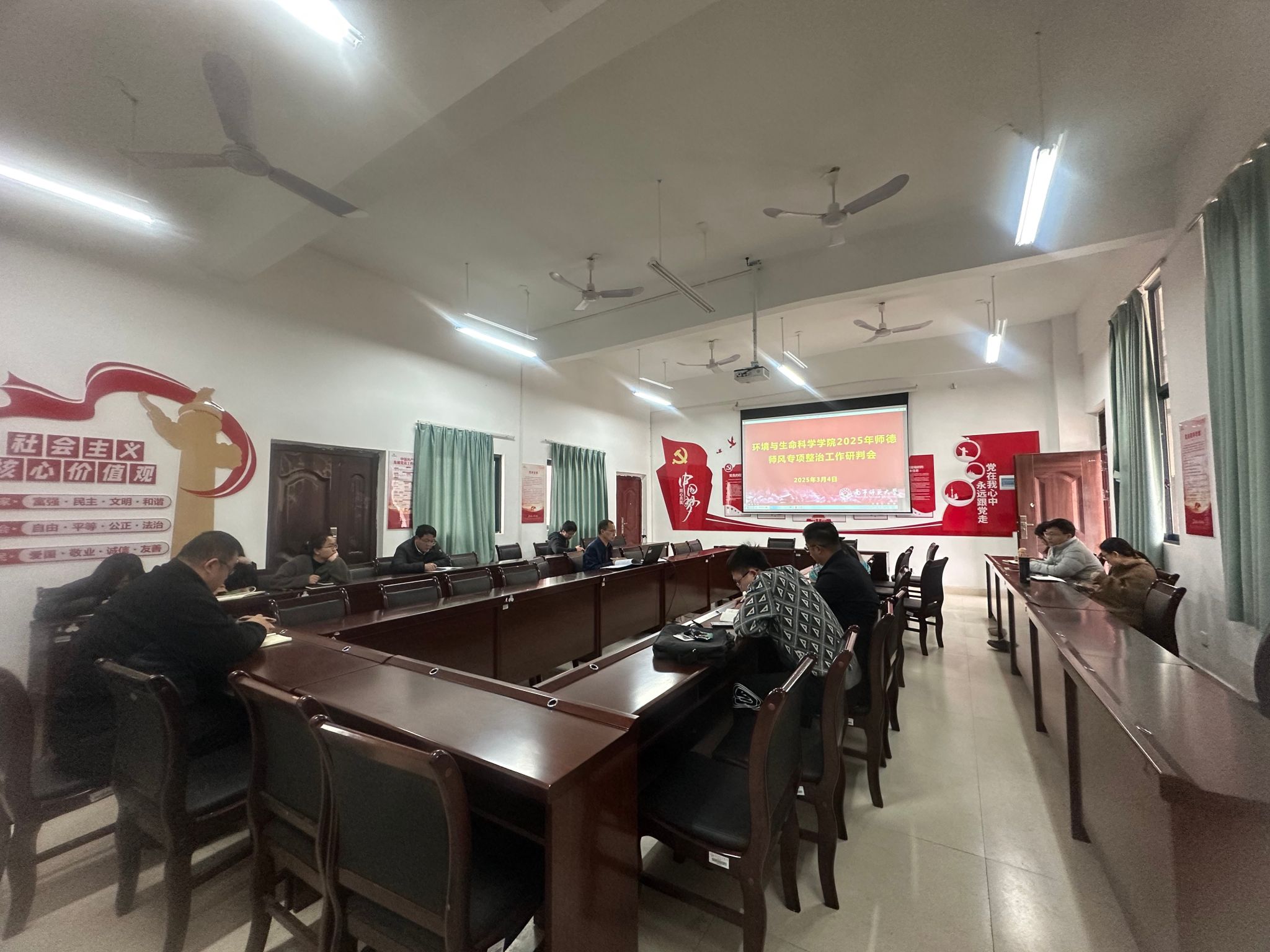 3月4日, 黑料不打烊 召开师德师风专项整治工作研判会,深入学习贯彻习近平总书记关于师德师风建设的重要讲话精神,部署2025年整治行动。会议由学院党委副书记(主持工作)韦东林主持,全体教职工以“线上+线下”形式参会。会上,韦东林领学习近平总书记关于“四有”好老师、“四个引路人”等重要论述,强调教师应坚定理想信念,以“教育家”精神为引领,将立德树人贯穿教育教学全过程,做学生品格与价值观的塑造者。他结合学校党委相关文件要求,指出全体教职工须严格践行《新时代高校教师职业行为十项准则》,筑牢思想防线,坚守“政治、法律、道德”三条底线。