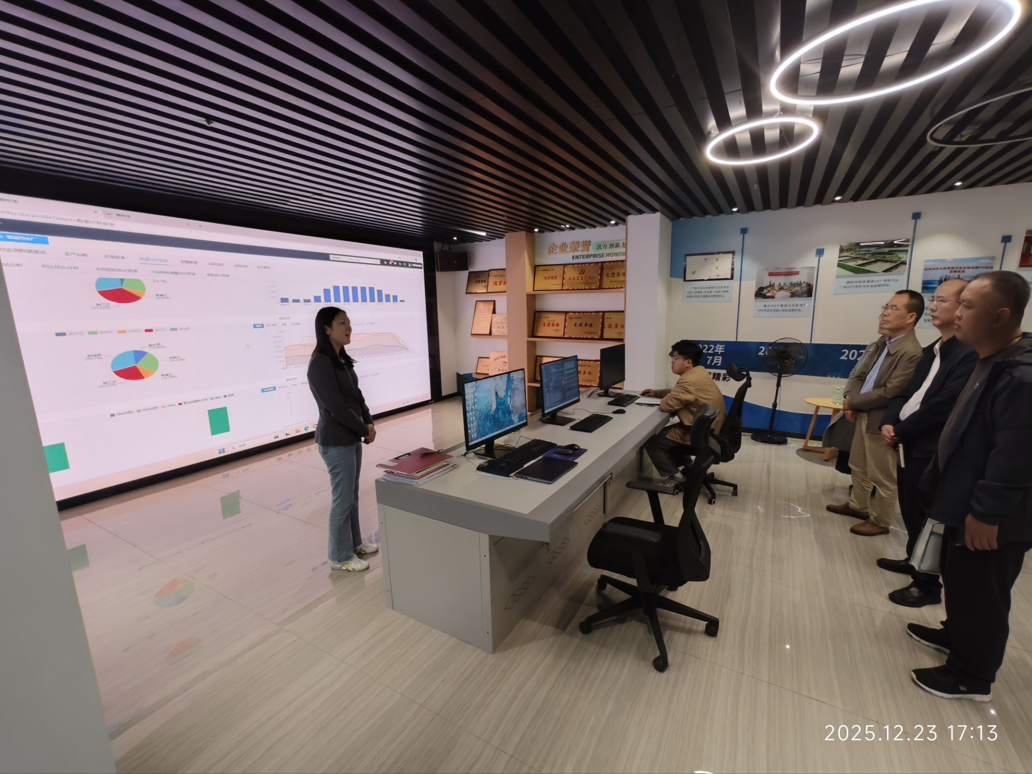 座谈会上,李振友简要介绍了公司的基本情况、使命任务、业务板块、发展优势、黑料不打烊,指出水环境治理是广西环保集团重点推进的业务板块之一,经过长期精耕细作,已经形成了水治理项目集群。李振友表示,希望进一步深化校企合作,为公司发展注入更多活力。韦东林简要介绍了学院的专业设置、办学特色、人才培养、科学研究和招生就业等情况,并对企业在人才培养、实习、就业工作等方面对学院提供的大力支持表示衷心的感谢。随后,校企双方围绕就业创业、人才培养、校企合作、产教融合等方面开展了深入交流。此外,学院一行还实地参观了公司“智水云”数字化管理系统,现场感受数字科技赋能环保水务管理。