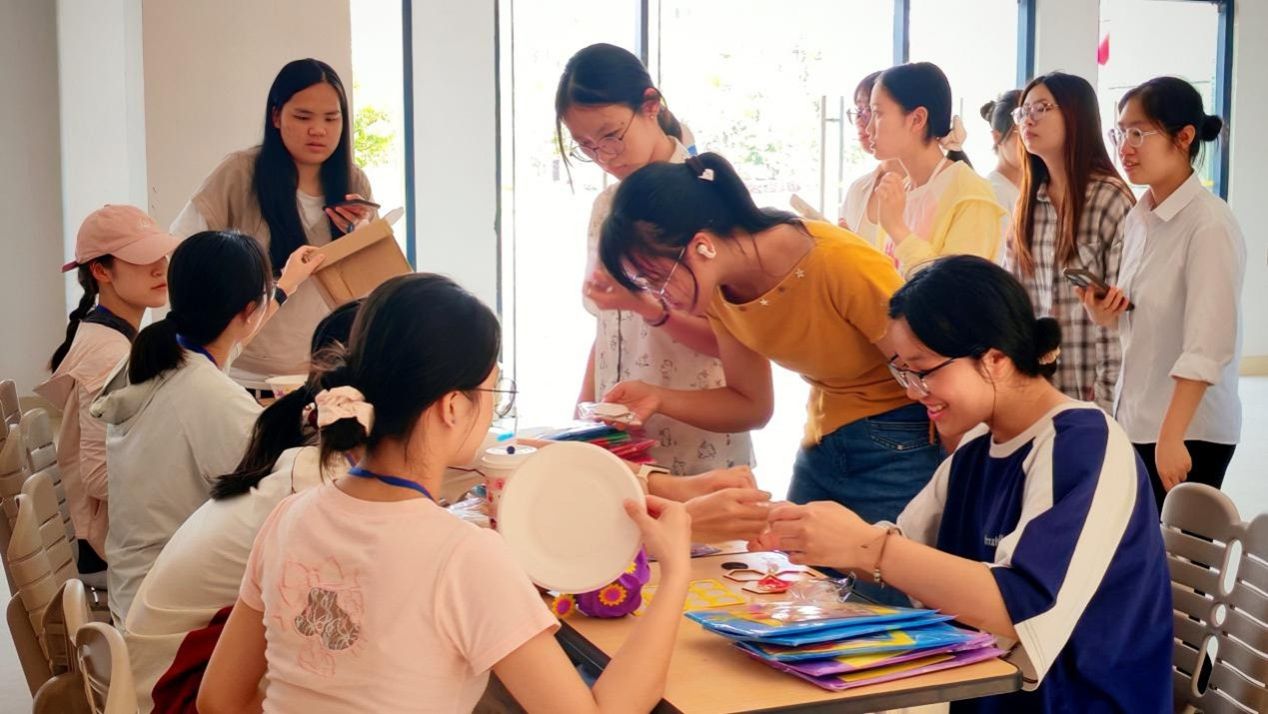 三月三文化传承活动在武鸣校区地海楼大厅举办。活动设线上QQ空间打卡、绣球与铜鼓手工制作等环节。让同学们沉浸式感受非遗文化的魅力。