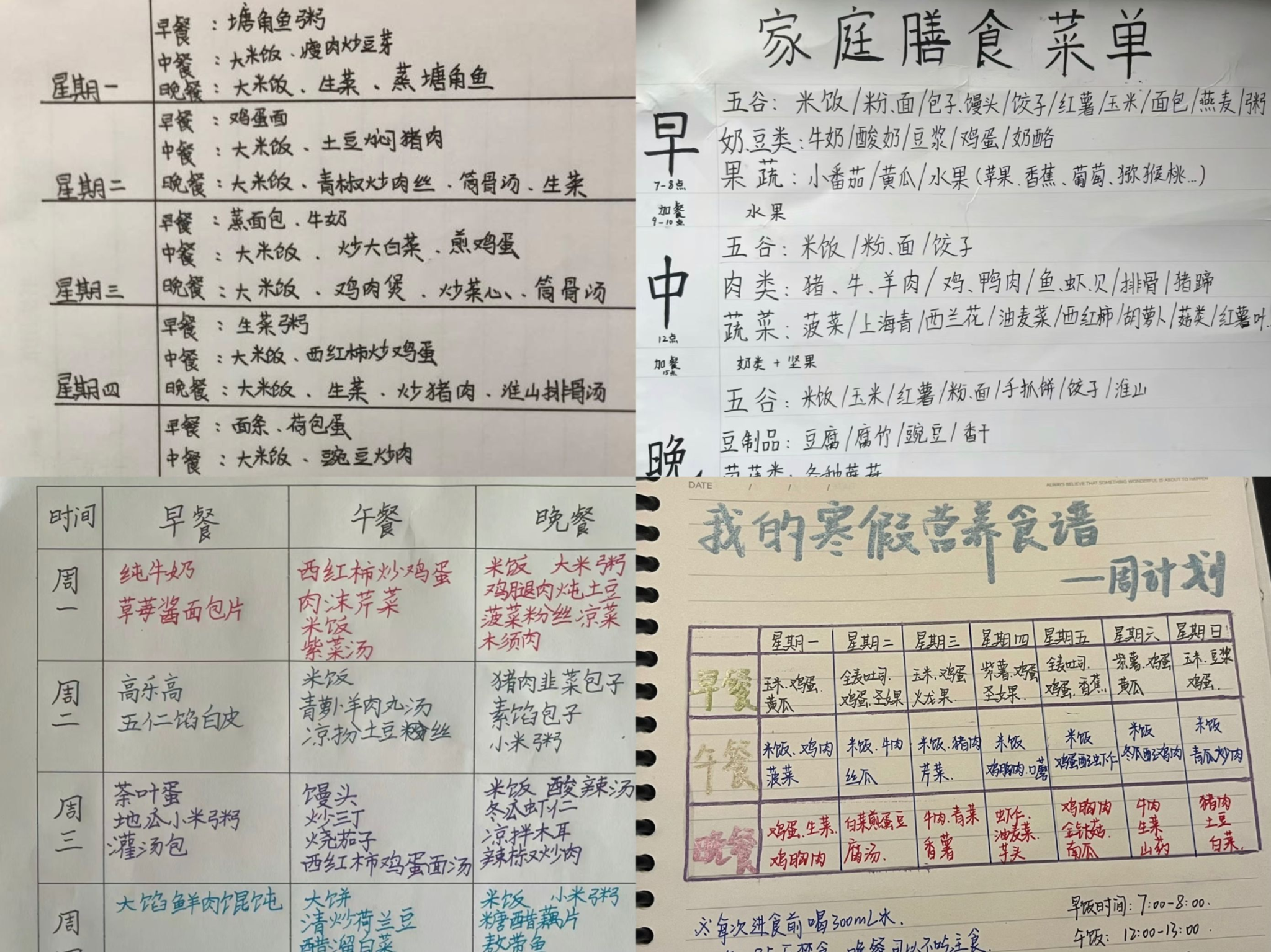 寒暑假“三个一”打卡活动:要求同学们在寒暑假期间,学习并制作一道运动食谱中的菜肴。通过学做菜肴,同学们不仅掌握了新的烹饪技能,还了解了不同食材的营养特点和搭配方法。