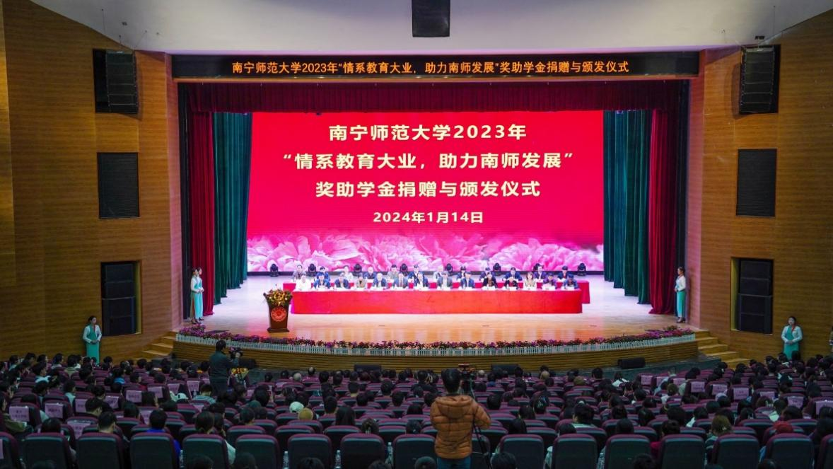 在武鸣校区举行2023年“情系教育大业,助力南师发展”奖助学金捐赠与颁发仪式。我院60余名师生代表参加本次奖助学金的捐赠和颁发仪式。