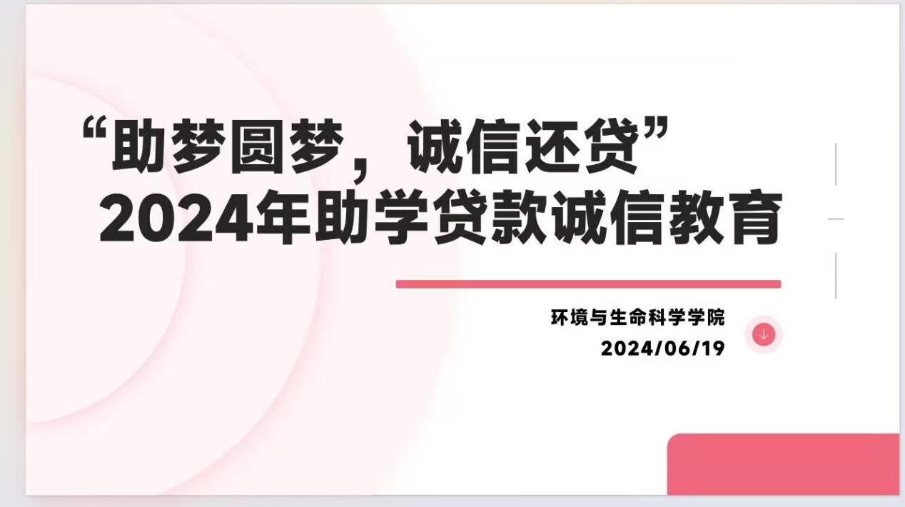 于2024年6月19日下午在地海楼B109教室开展2024年助学贷款诚信教育“助学圆梦,诚信还贷”主题会议。