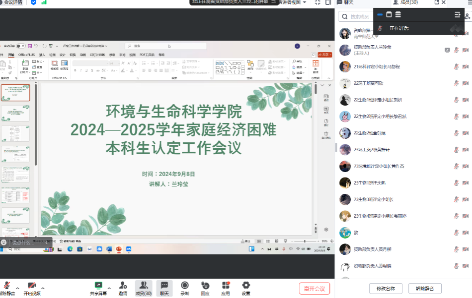 于9月8日晚上组织各班评定小组长召开了家庭经济困难本科生认定工作线上交流会。