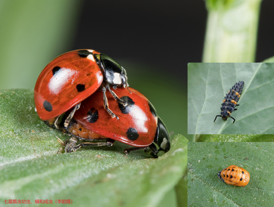 天敌昆虫:分为捕食性天敌昆虫和寄生性天敌昆虫。常见于蜻蜓目、螳螂目、脉翅目、广翅目、鞘翅目、半翅目、双翅目和膜翅目中的种类。