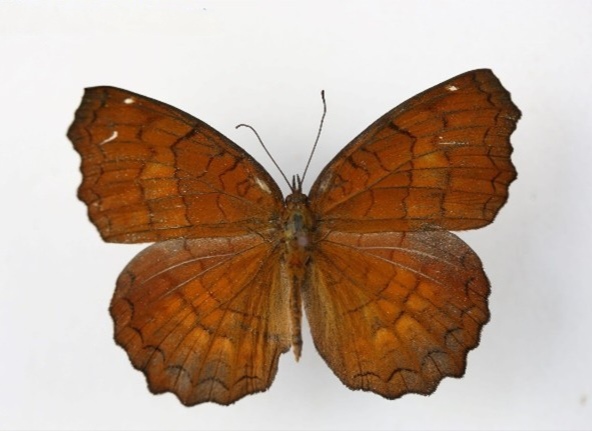 鳞翅目蛱蝶科。小型蛱蝶,翅背面呈红褐色,前翅中间部位有几条深褐色的短纹路,两个翅膀上都有好几列大致和边缘平行的深褐色波浪线,前翅顶部附近还有一个小白斑。翅腹面呈深红褐色,有暗色波浪线纹,从翅膀基部到中间有3条红褐色的带子,翅膀端部的颜色会变浅。雄蝶前翅腹面和后翅背面有能区分性别的特殊标记(性标)。