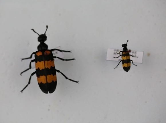 习性与眼斑芫菁近似。遇到危险时,它会从腿节分泌含斑蝥素的黄色液体,这种“毒液”能让天敌皮肤红肿起泡,轻松御敌,斑蝥素还可用于制药。更奇妙的是,雄虫会将斑蝥素作为“嫁妆”传给雌虫,帮卵抵御捕食者。分布于湖北、浙江、福建、广东、海南、贵州、云南、台湾。
